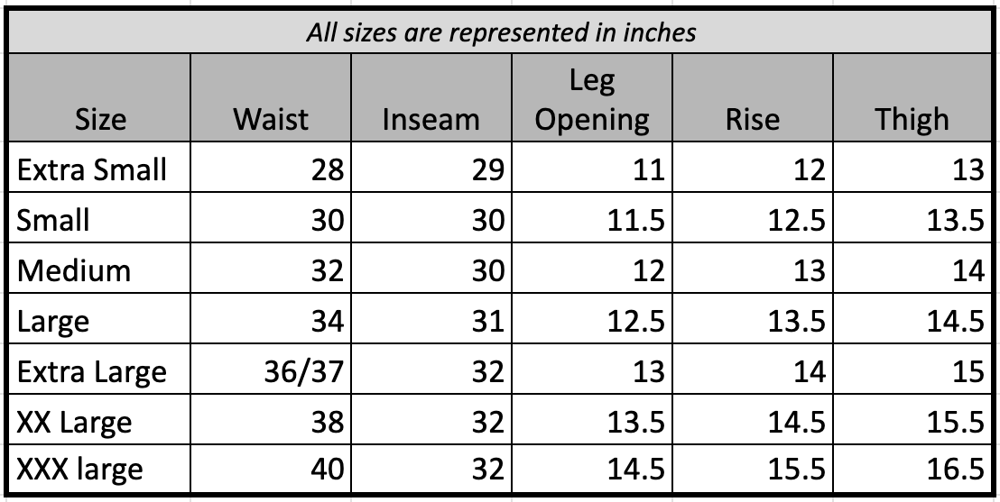 Use this size chart to make sure you get the perfect size Baggy Jean. We suggest sizing up for a baggier fit.